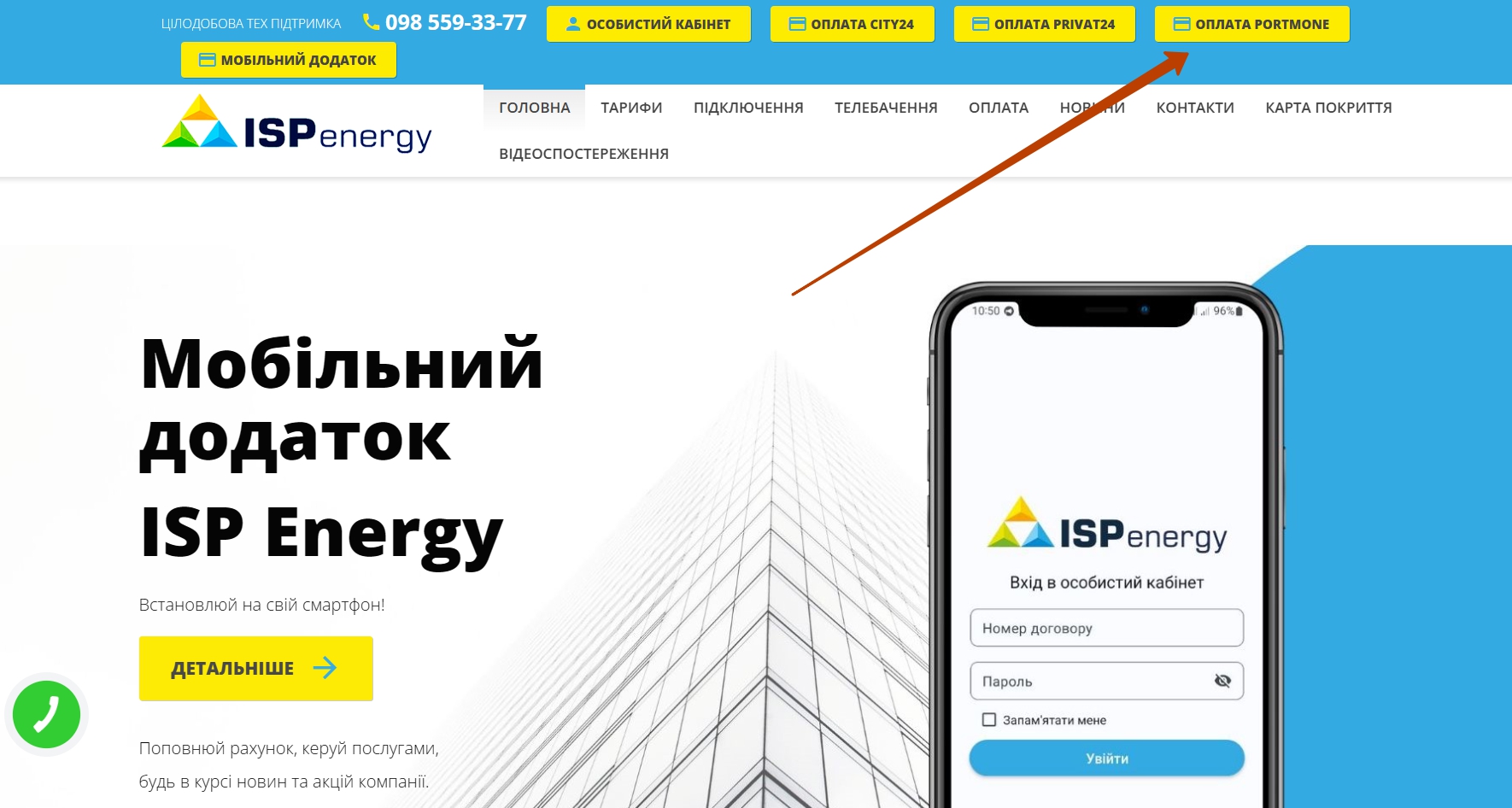 ІНСТРУКЦІЯ по оплаті телекомунікаційних послуг (доступу до мережі Інтернет) компанії "ISP Energy" через сервіс "Portmone" картою будь-якого банку.